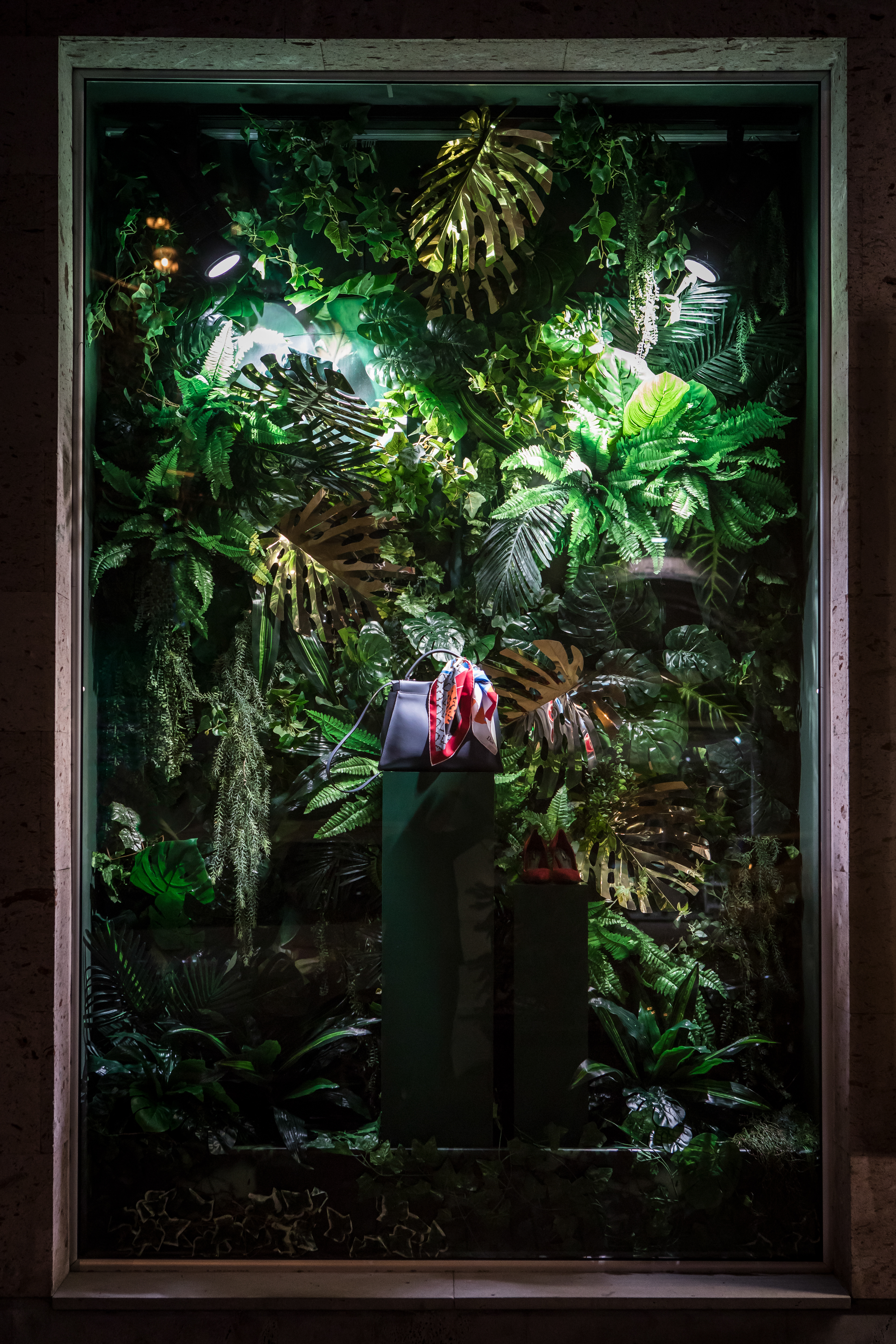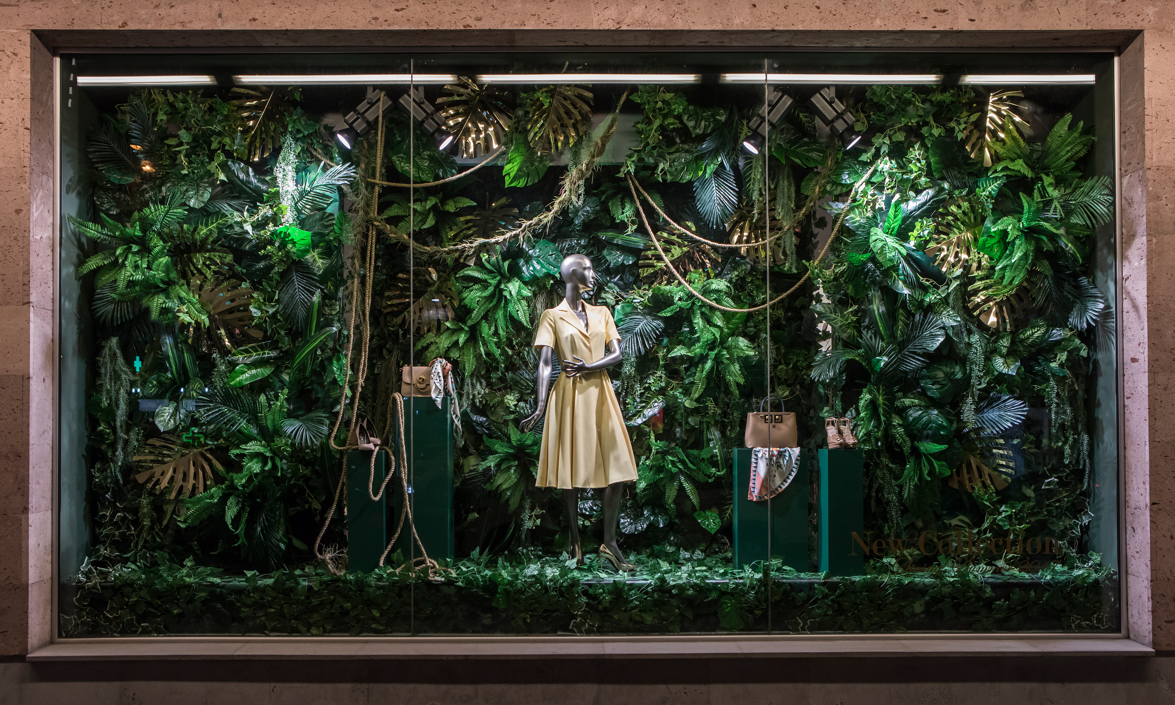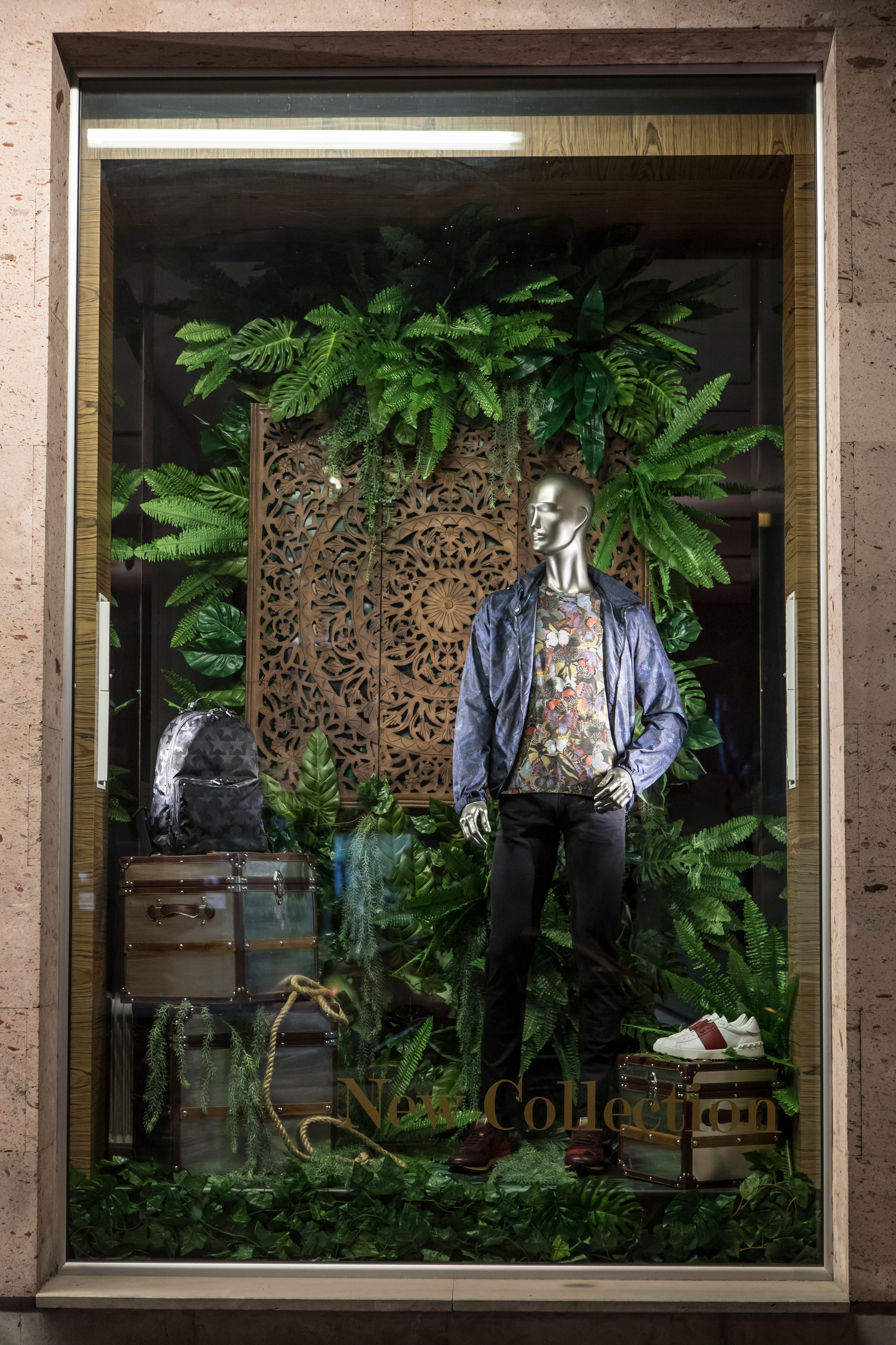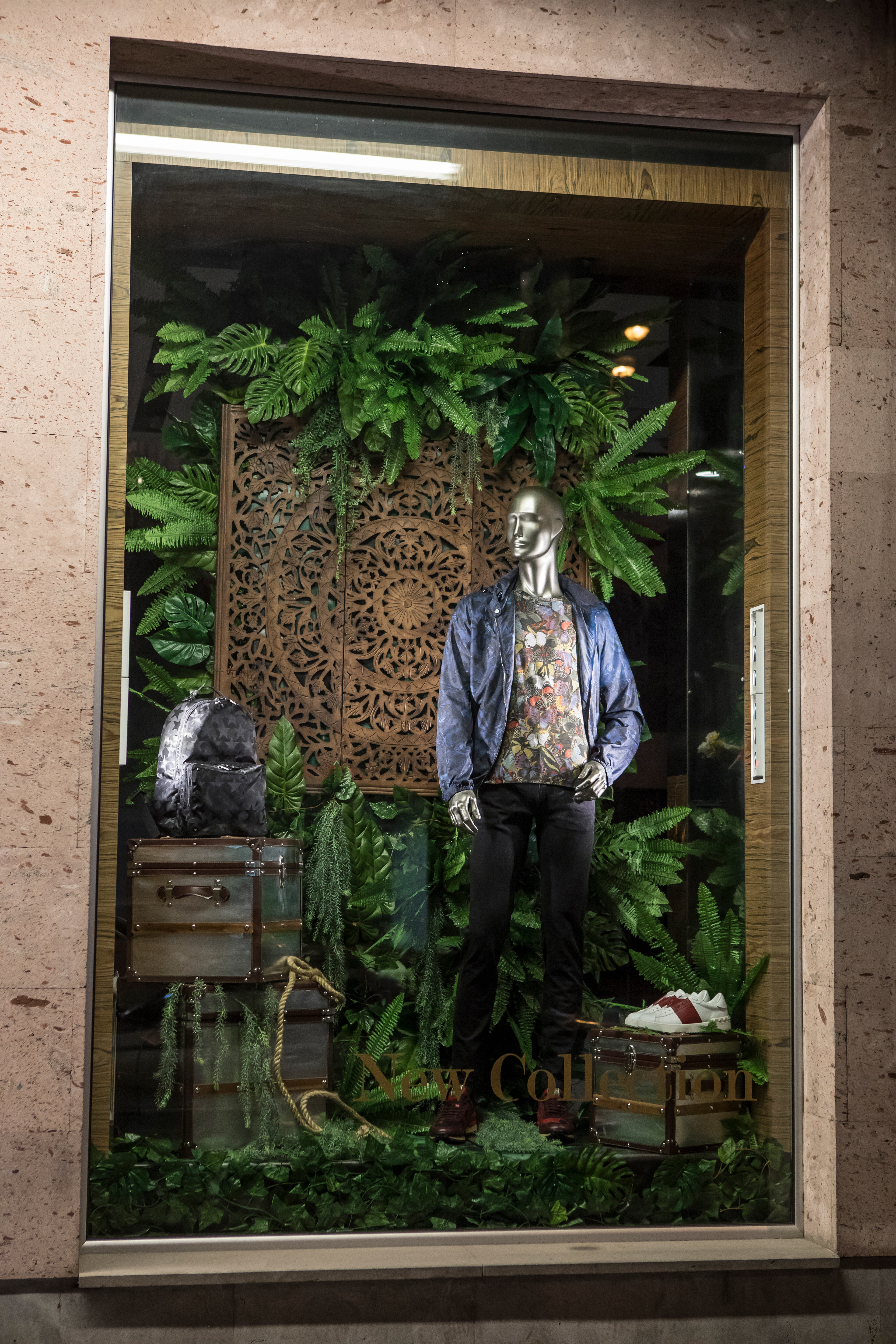 LaGalleria Luxury Boutiques Spring-Summer 2017 tropical inspired window display project. Designed by me, executed by Mon Amie.