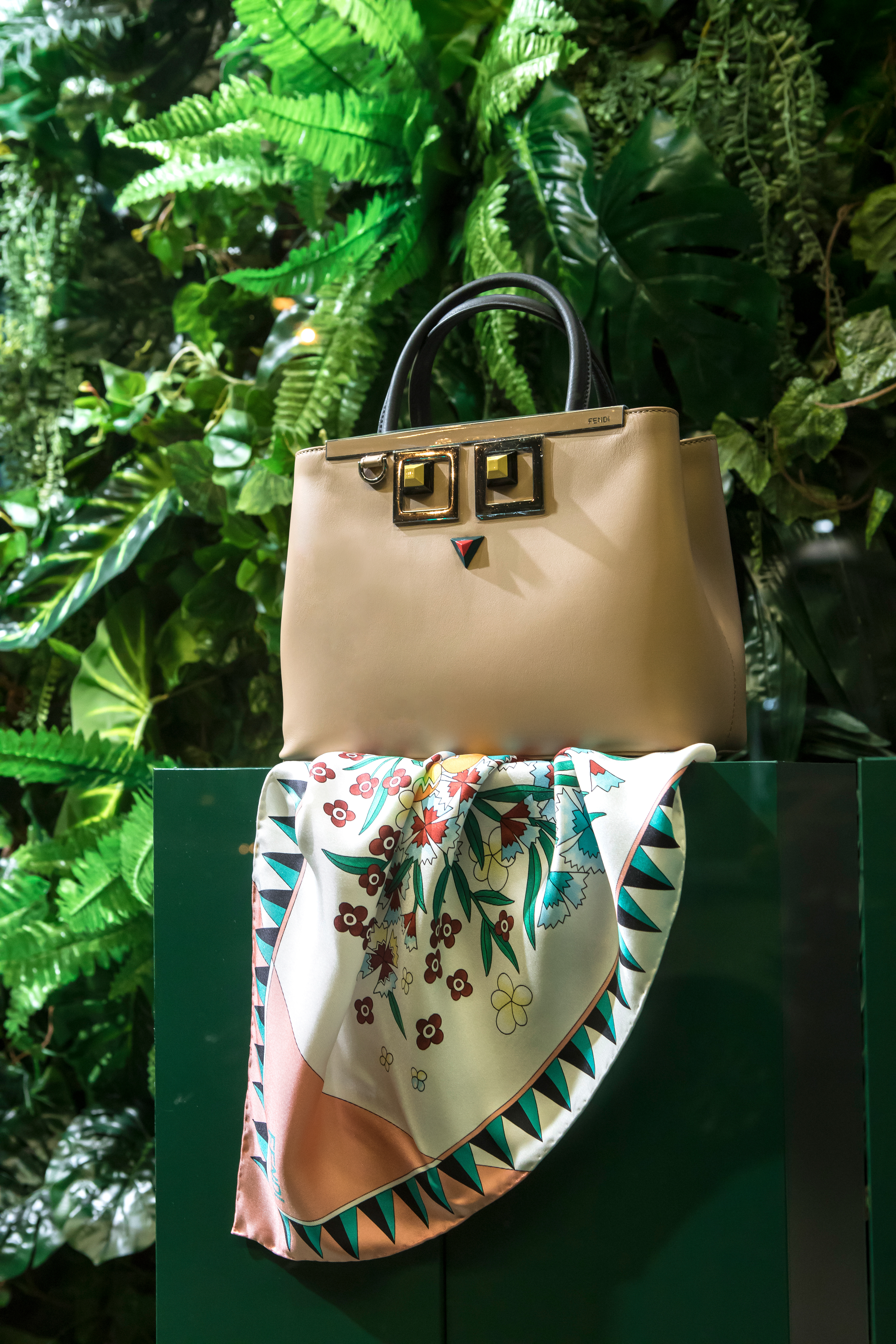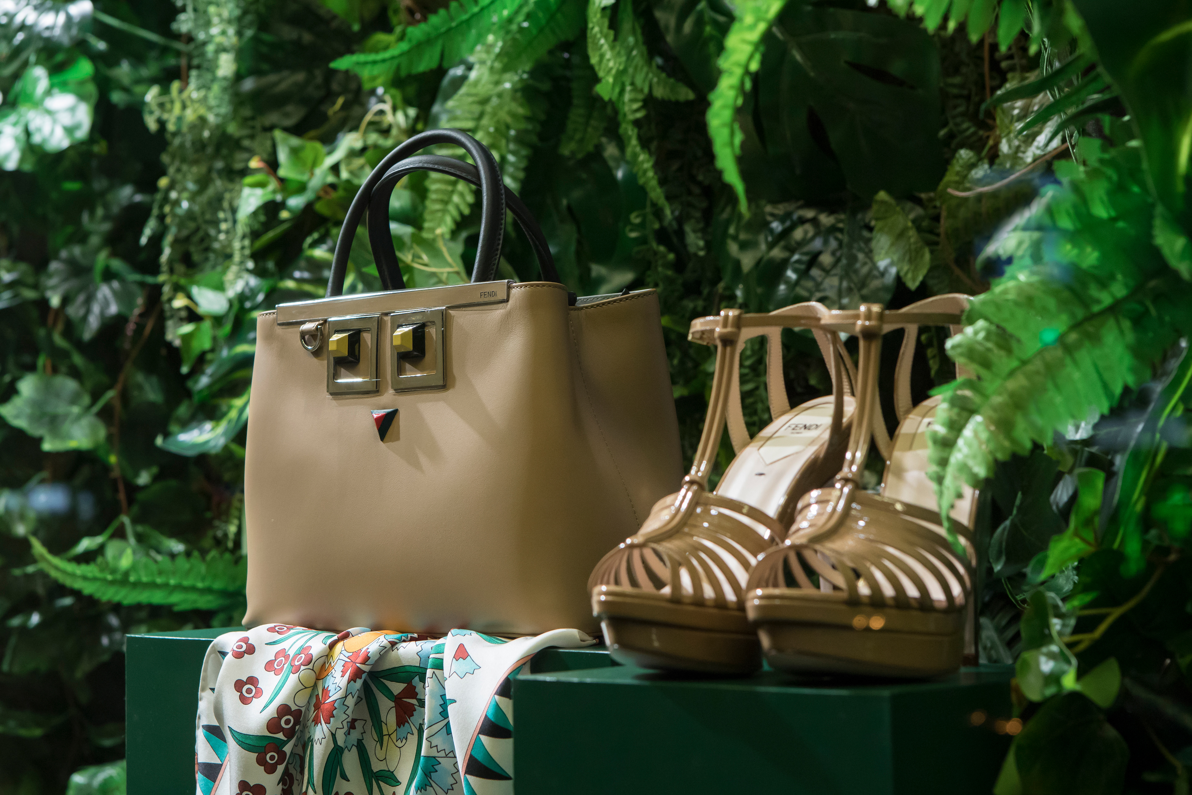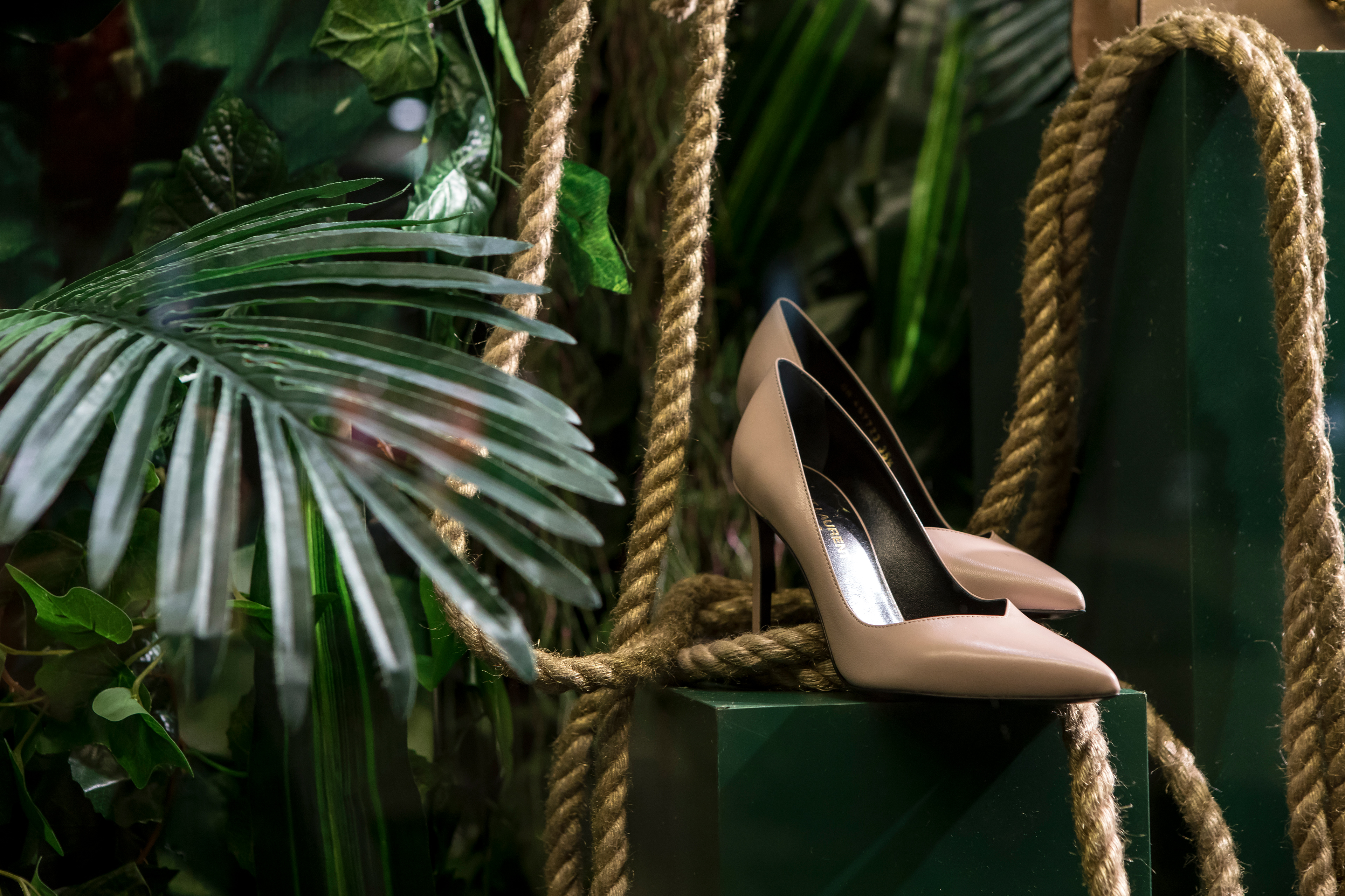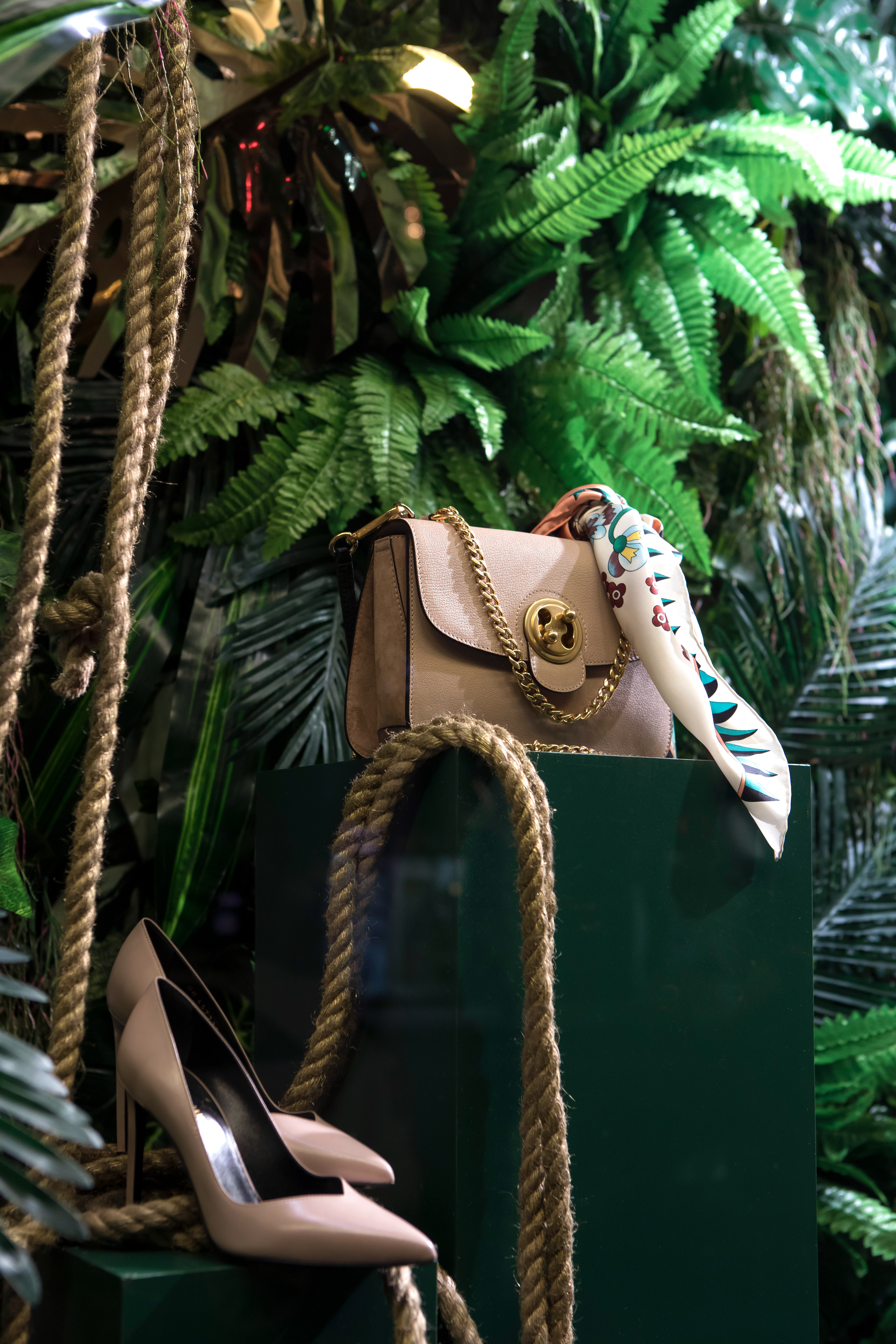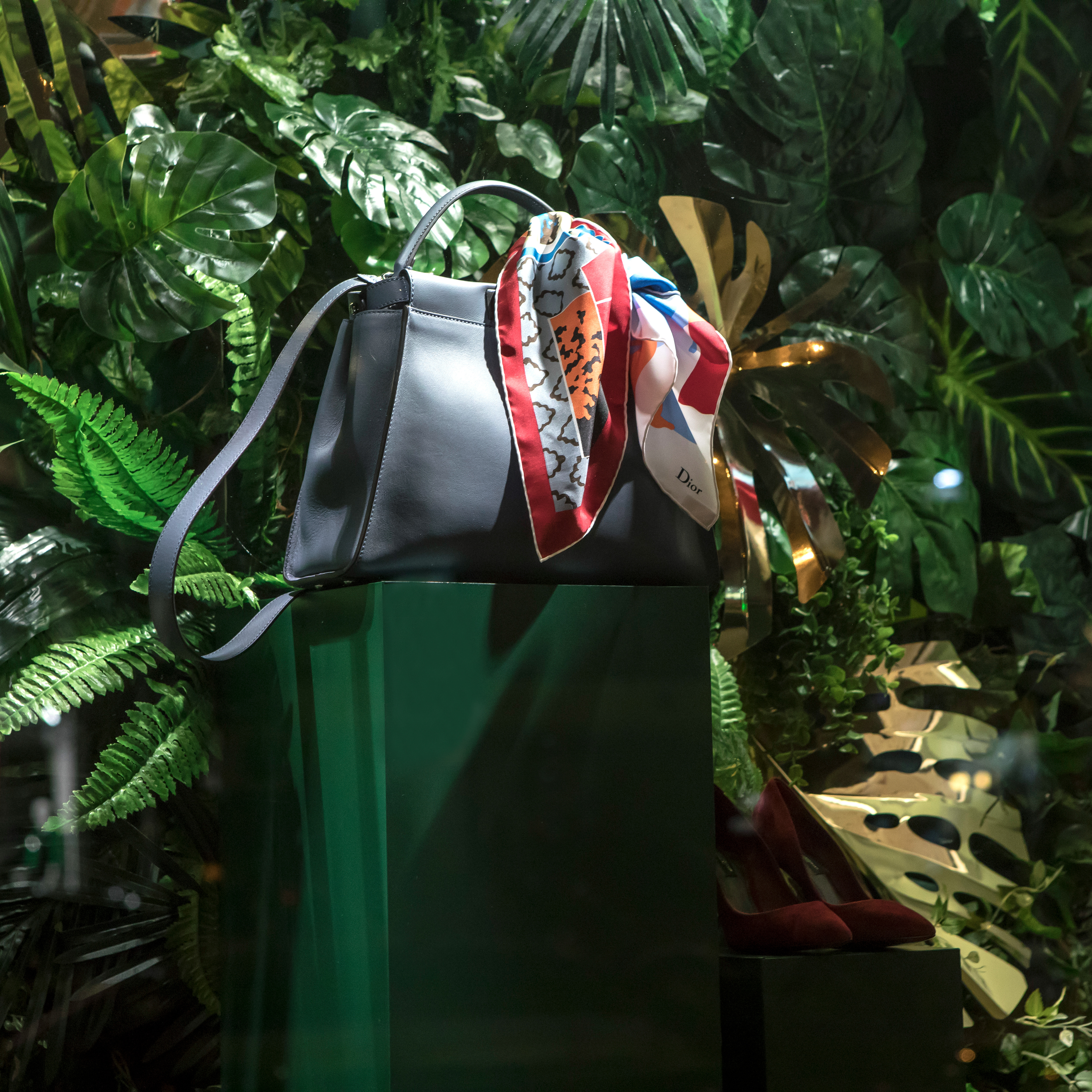 LaGalleria Luxury Boutiques Spring-Summer 2017 tropical inspired window display project. Designed by me, executed by Mon Amie.